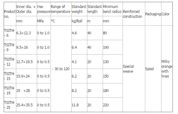 MODEL ขนาด (นิ้ว)I.D. x O.D. (mm)แรงดันใช้งาน (Bar)น้ำหนัก/ม้วน (Kg/Roll)ความยาว (m)