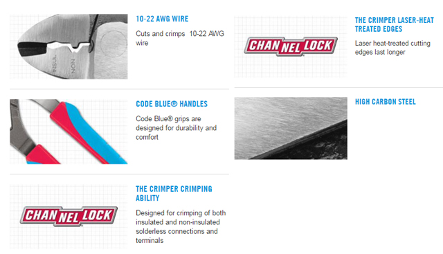 The versatile CHANNELLOCK® crimper crimps and cuts insulated and non-insulated solderless